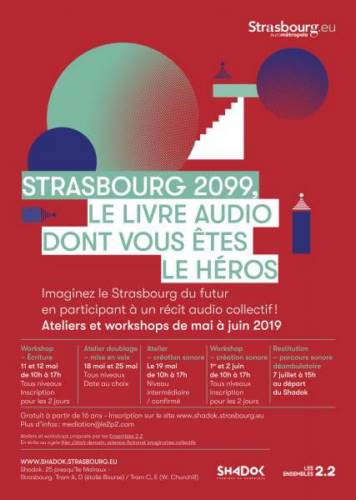 Strasbourg 2099 est un projet audio, participatif et collectif de récit d’anticipation. Le but est de proposer, via une application mobile utilisant la géolocalisation, un parcours sonore déambulatoire à écouter sur smartphone à la découverte de différents lieux de Strasbourg, au fil d’un récit imaginant la ville du futur et qui évolue au rythme de vos choix. Une expérience unique pour chaque auditeur !