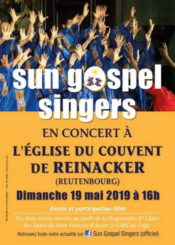 Les Sun Gospel Singers ont acquis leur notoriété au travers de nombreux concerts (Zénith de Strasbourg, Nancy et Metz) et de manifestations solidaires organisées sur toute la région Grand Est et en Allemagne.