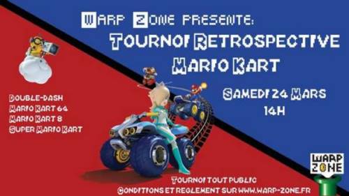 Il fait chaud, c’est le mois de Juillet, nous sommes au 117, Rue Charles III et il se déroule en ce moment même le premier tournoi organisé par Warp Zone, un tournoi rétrospective Mario Kart. Les poules se passent sur Gamecube(Mario Kart Double Dash), les phases suivantes sur N64 (Mario Kart 64) et la demi-finale et la finale sur Super Nintendo (Super Mario Kart), que de challengers, que de suspens...