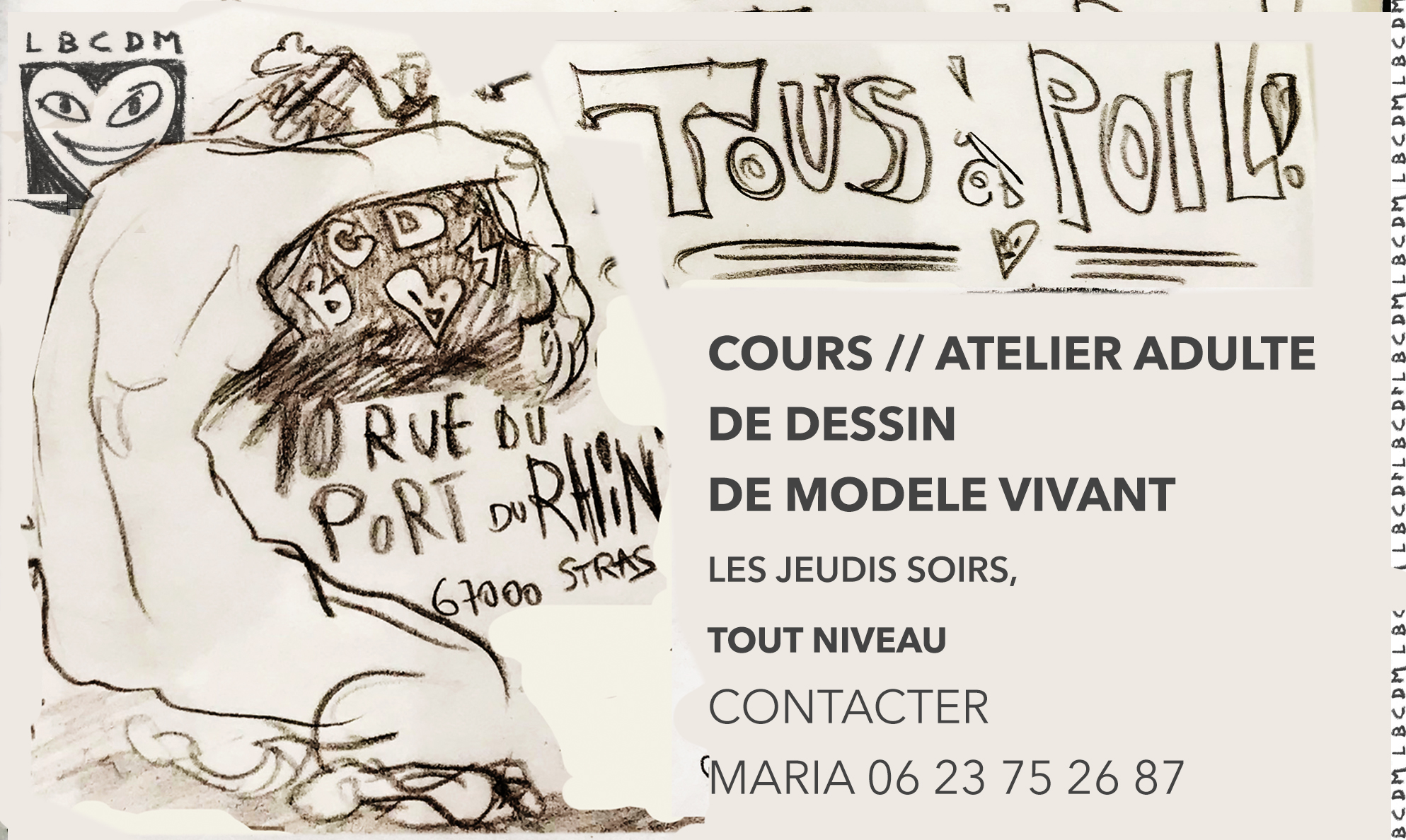 Poses rapides de 1 à 5 minutes, ainsi que des plus longues de 10 minutes. Vous explorez et échangerez diverses méthodes de travail qui se complètent (croquis rapides, esquisses plus approfondies, réalisations picturales), divers supports et divers matériaux (crayon, encre de Chine, fusain…)