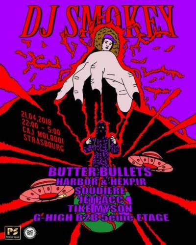 DJ Smokey producteur talentueux et productif, le canadien effectue sa première tournée en europe, à ne pas manquer ! Butter Bullets aka Sidisid et Dela, duo le plus creeptique du rap français en exclu ! Accompagné d’une rafale de guests, Soudiere, Jetpacc, ainsi que Harbor & Hexpir projet chaud de la sphère hip-hop sxb. Mais aussi, les mandataires tr’ills mafia G-High, 5ème étage et Tike Myson !