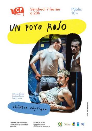 Deux êtres se cherchent, se jaugent, se provoquent, s’affrontent, se désirent, se rejettent, s’unissent dans les vestiaires d’une salle de sport. « Un Poyo Rojo », c’est une expérience sensorielle étonnante : compétition sportive, combat de coqs, danse, théâtre, acrobatie, percussion, clown? - Un peu tout ça à la fois ! A partir du mouvement, de l’action, et sans un mot prononcé, ils proposent, avec humour et une énergie intense, d’expérimenter les différentes façons d’entrer en contact et de créer une relation. Laissant aux spectateurs toute latitude d’interprétation...