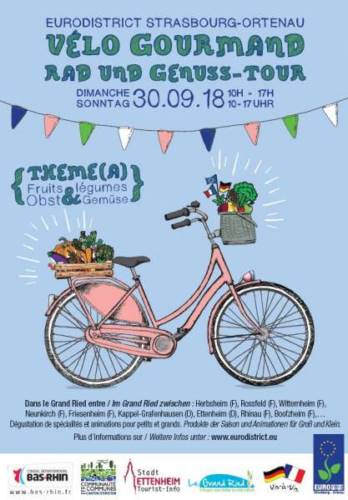 Le circuit vélo transfrontalier nous emmène dans le sud de l’Eurodistrict à la découverte de nos magnifiques paysages, nos nombreux vergers et nos villes et villages de caractère. Le circuit de 40 kilomètres traverse Herbsheim (FR), Rossfeld (FR), Witternheim (FR), Neunkirch (FR), Friesenheim (FR), Rhinau (FR) et Boofzheim (FR) dans le Grand Ried français ainsi que Kappel-Grafenhausen (DE) et Ettenheim (DE) dans l’Ortenau allemande. Le parcours sera rythmé par des places gourmandes dans chacune des villes où des associations et producteurs locaux déclineront autour du thème « fruits et légumes » des dégustations, de la petite restauration ainsi que des animations, de l’ambiance musicale et des activités ludiques pour petits et grands.