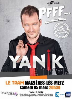 Une arme de précision qui s’allie à une qualité de jeu (et de chant !) pour viser juste et faire un carton plein. Seul spectacle au titre sans voyelles et livré avec notice et posologie ! Comme pour des collutoires qui font « Pschitt » mais là, le remède est Anti-morosité.Il tire à vue sur les machos, les barrots, les mythos, les fachos. 3 « Pfff », une interjection de dédain pour tous les formatages dans une langue percutante, pertinente et peu châtiée. Le second degré y est roi et pour couronner le tout, c’est très joué, très enjoué, bien chanté, bien senti. Avec un humour décapant et sur un mode résolument pince sans rire, Yanik, entre la décontraction d’un Coluche et le cynisme ravageur d’un Desproges, balance un énorme coup de « Pfffied » aux cultes !Prix YouHumour 2009